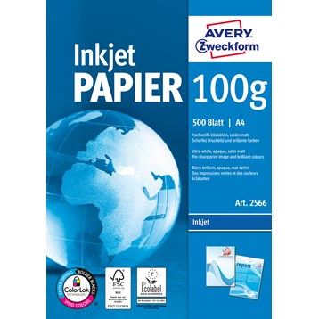 Avery inkjet papir er velegnet til print af reklameflyers, invitationer, præsentationer mv. Det har en ‘bright white’ overflade, som giver et flot print.